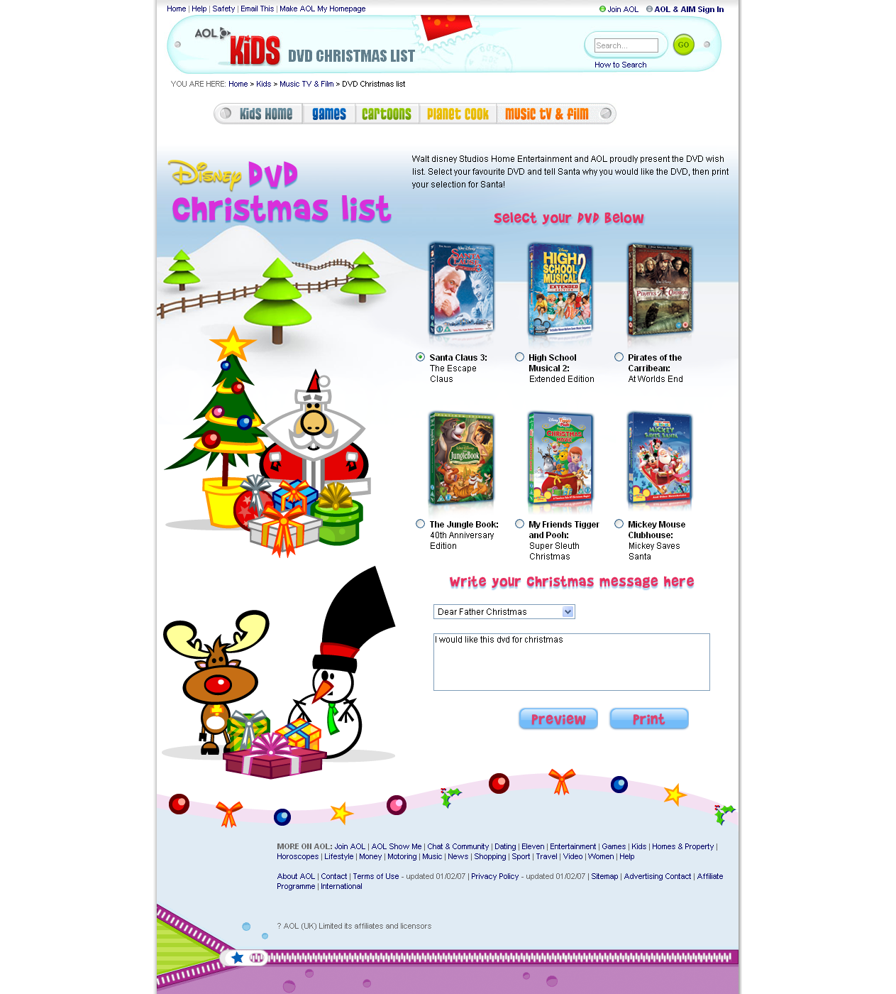 - Link: http://kids.aol.co.uk/music-tv-film/dvd-christmas-list/